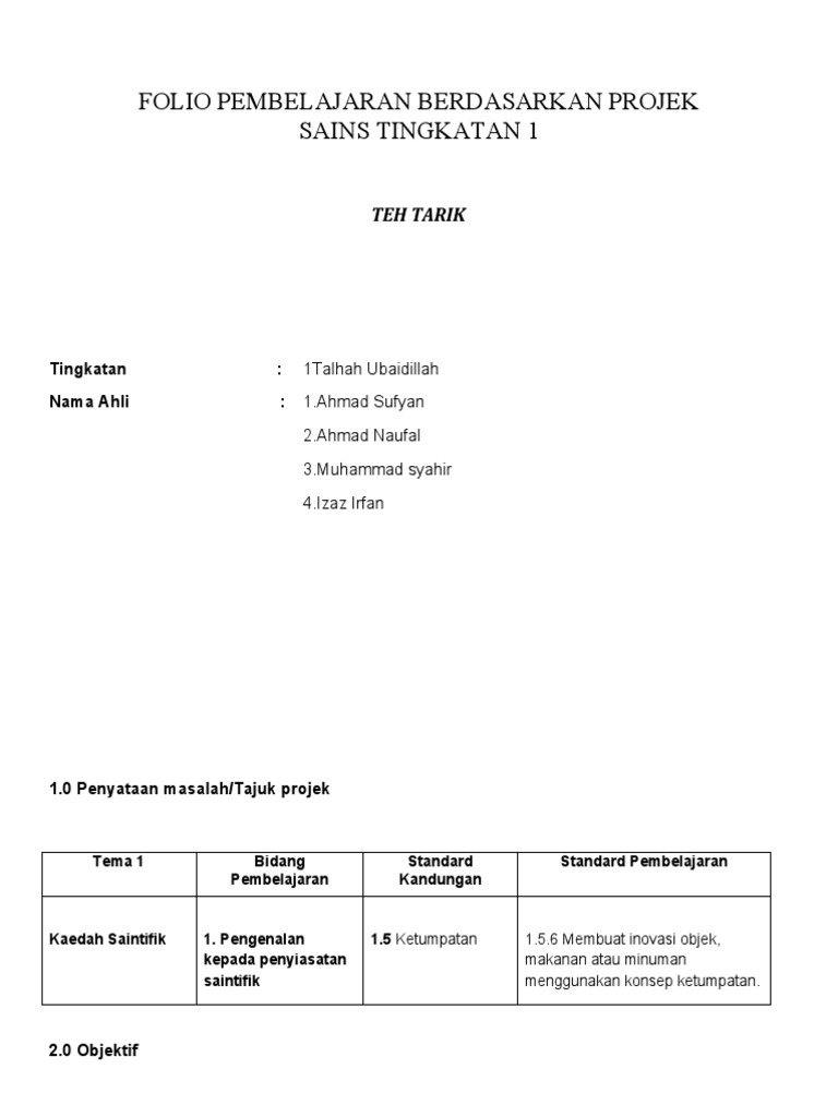 Senarai pbs band 6 untuk subjek sains tingkatan 2. FOLIO SAINS SEM 2. -PENDAHULUAN -OBJEKTIF KAJIAN 2.